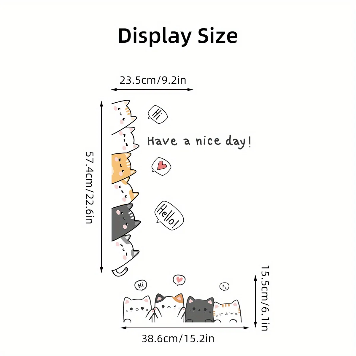 Brighten up any space with these Cartoon Cute Cats Wall Stickers. Featuring 10 playful cat designs and the cheerful phrase “Have A Nice Day,” these decals bring warmth and charm to your décor. Perfect for kids’ rooms, nurseries, and play areas, they create a fun and friendly atmosphere. The stickers are made from high-quality, durable PVC material that is safe and long-lasting. Easy to apply and remove, they leave no sticky residue behind. Use them to decorate walls, doors, windows, or furniture for a creative touch. Their cartoon style appeals to both children and cat lovers alike. These stickers instantly transform blank walls into lively and inviting spaces. Ideal for living rooms, bedrooms, or even classroom decoration. Add a touch of cuteness and positivity to your home with these adorable cat wall decals.
